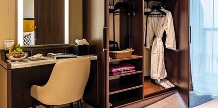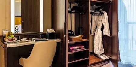 Noticeably larger than standard and superior single cabins, at 25.9 square metres, the Deluxe is the perfect way to upgrade your cabin. You also have a walk in wardrobe, an extra window for more light and a bigger private balcony.