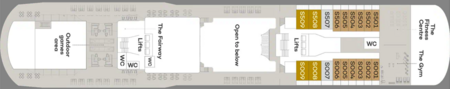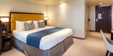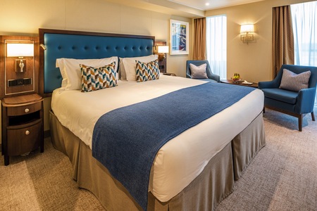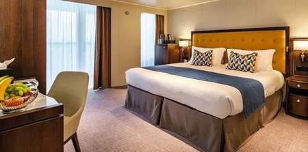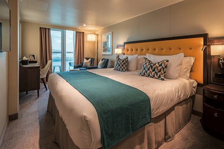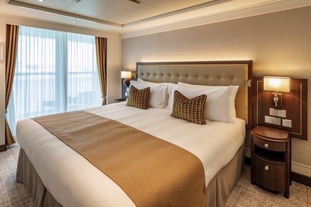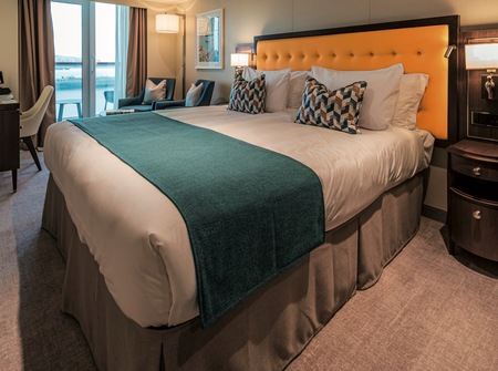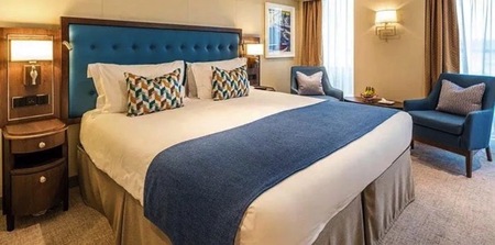 Offering more space with 25.5 square metres of accommodation and extra facilities including a walk in wardrobe, they are also higher up on the ship, for better views and access to all of the ship's facilities.