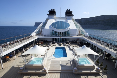 The Retreat is located around a central whirlpool with step-up access to water maintained at an inviting temperature. Up to 28 guests can stretch out on comfortable sun loungers; pull up a bar stool or take a table seat for champagne and cocktails custom created by Seabourn mixologists; or enjoy a selection of bites from a healthy spa menu. A selection of amenities include fresh fruit baskets, plush towels and personalized bathrobes, while a dedicated Retreat Concierge will be available to satisfy guest requests.