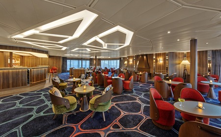 The Constellation Lounge is the highest indoor viewing point on each ship. Floor-to-ceiling glass walls wrap around the space, offering guests stunning 270-degree, outward-facing views as far as their eyes can see, heightening their expeditionary spirit while bringing them closer to wildlife and wonders at sea and in port.