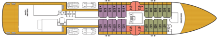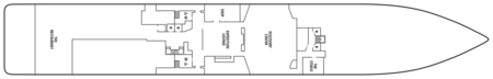 The space provides direct access to the Bow Sprit on Deck 6 forward (when conditions permit) to give guests the sensation of standing in front of the ship and views of waves parting and ice sloughing off the bow at the waterline.