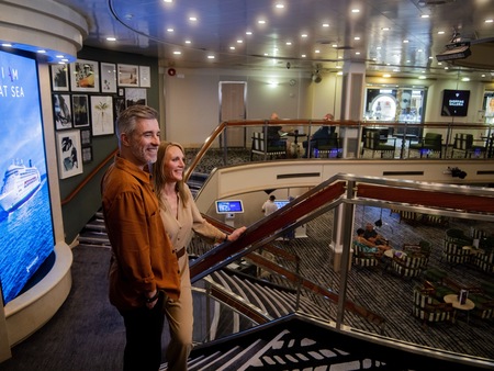 Her dining options will inspire you with two main restaurants, speciality dining options*, and a more casual bistro-style café. Sit back, relax and enjoy a drink in one of her four bars, lounges and pub. Or take in a show in the tiered main theatre, or discover your hidden talents in the card room, library, and craft studio.