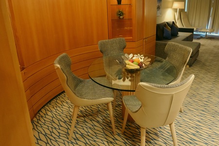 The forward Suite (Ambassador Deck 10) is located close to the spa, sun/pool deck, and Borough Market one deck above on Lido Deck 11. The Suite includes a private balcony with ocean view, sitting area, two twin beds, and the majority of cabins can be converted to a double bed arrangement.