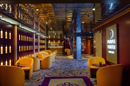 The Purple Turtle Wine Bar continues Ambassador’s Purple Turtle venues, with her sister the Purple Turtle Pub located on board her sister ship Ambience.