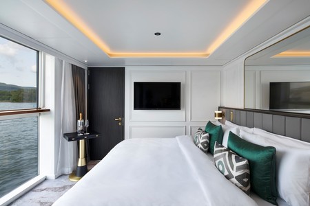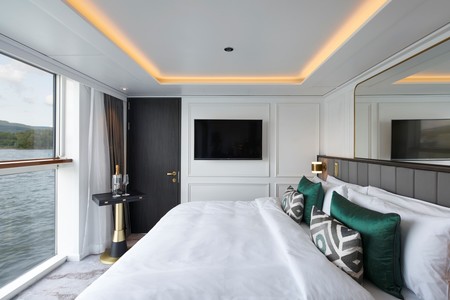 The S.S. Victoria, sister ship to the S.S. Elisabeth, joins our European fleet in 2024 with an ambiance of contemporary luxury and features the largest suites on the rivers of Europe. Two Royal Suites onboard offer an incredible 506 square feet each. Reserve the adjoining standard Suite next door, and that turns into 759 square feet total, with two bedrooms connected by a separate living room. All the Suites and Signature French Balconies offer abundant space—much higher than standard—with ultra-comfortable, water-facing beds dressed in Uniworld’s fine custom linens.