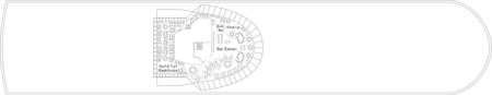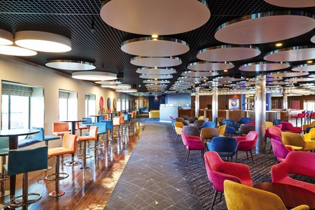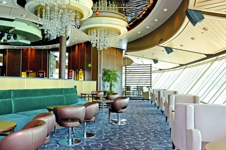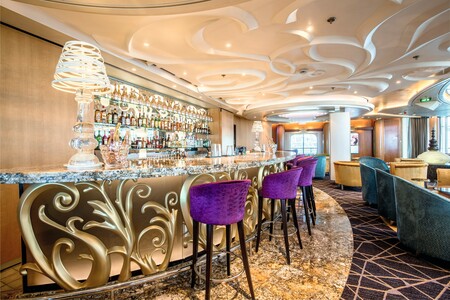 A position on the highest point on deck 11 - where the bar gets its name from - means that drinks in this lounge come with the ship's best sea views. It's a contemporary cocktail bar by evening, transforming into a late-night disco as the hours pass.
