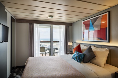 Balcony Cabins are on deck 6, sleep two and got a full refurbishment in November 2024. They feature a set of twin beds that can convert to a queen-size double bed. You can also expect a sitting area, an en suite with a WC and a shower, and a balcony. These cabins sleep two, and are between13 and 14m².