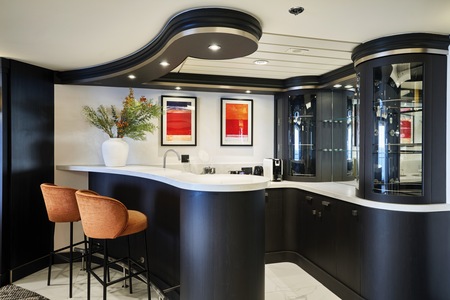 There are five Executive Suites, which all got a full refurbishment in November 2024. They sleep up to four, and come with a separate living area with a queen-size sofa-bed, a queen-size bed, and an en suite with a WC, shower and bath. You can soak up the sea views from the comfort of your private balcony - it's got glass doors, which let in plenty of light. Executive Suites are spacious, measuring in at 47m². When you book a cabin with Suite Service included, you can look forward to one continental breakfast in bed per person per week, and a free pressing service for up to three items during your stay. On top of that, you'll have a coffee machine, slippers, a dressing gown, upgraded toiletries and a choice of pillows to best fit your comfort needs.