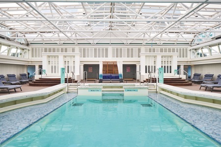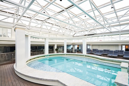 Marella Discovery's indoor pool comes with a huge glass canopy roof, and rows of comfortable loungers.