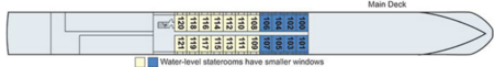 84 comfortable outside staterooms (22 Standard Staterooms, 18 French Balcony Staterooms, 35 Veranda Staterooms, 7 Veranda Suites, 2 Explorer Suites)