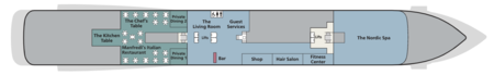 Inspired by the trade routes of Vikings, the Explorers’ Lounge is the ideal place for guests to share their discoveries over an aquavit or a craft beer while sampling fine Scandinavian fare. Central to the Explorers’ Lounge is Mamsen’s, a casual gourmet deli inspired by Norwegian cuisine, from smoked salmon to open-faced sandwiches and locally sourced charcuterie and cheeses. The daily “Waffle Hour” provides mouthwatering samples of the beloved treat.