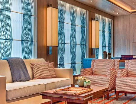 The ideal setting for relaxation and conversation, The Living Room draws guests together. Spacious seating, melodic piano tunes, live entertainment and planned activities foster rich camaraderie. And its well-curated Library informs even the best-read traveler. Adorned with nautical touches from Viking days, including the clinker-built bar inspired by ancient longships, it is the most inspired living room at sea.