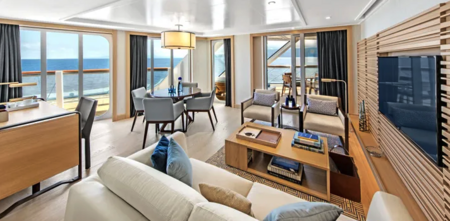 - Stateroom size: 1,488 sq ft multi-room suite including expansive private veranda