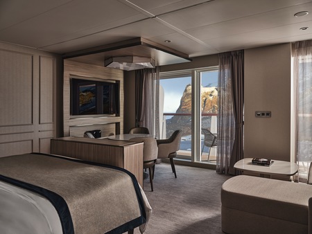 Our best-selling Premium Veranda Suite is more beautiful and luxurious than ever on board Silver Endeavour. This suite offers a large bedroom space with dreamy bedding, a stunning marbled bathroom with a large vanity, and sumptuous walk-in shower. Comfortable furnishings and elegant decor make staying in (almost) as good as going out! Spacious and well-situated, enjoy ultra-luxury amenities from the 24-hour butler service to the well-stocked mini-bar (and yes, they’re all included!). The sofa bed can easily accommodate a third guest.
