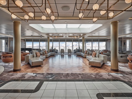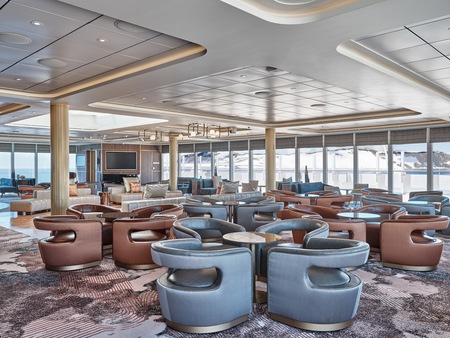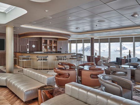 Strategically located midship on deck 4, the Explorer Lounge is the operational heart of shore excursions while on board. Equipped with state-of-the-art equipment, including large LED screens, this is where you’ll attend your daily recap and briefing sessions, chat with our industry-leading Expedition Team, or attend lectures that delve deep into the history, flora, and fauna of your destination. It is also the perfect place to gather for pre-dinner cocktails or evening events such as the Captain’s Welcome.