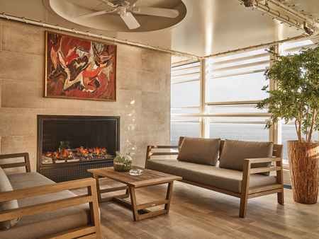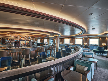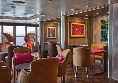 Set on the highest level at the very top of the ship, this is a quiet space for reading and reflection while being dazzled by the undulating seascapes that are essential to life on board. Borrow a book from the in-house library, read the papers, or just embrace the tranquility of being at sea.