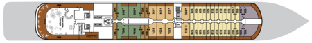 The Classic Veranda Suite provides a generous living space for voyagers. Located on the lower decks in the bow, the Classic Veranda Suite offers all the comfort and attention to detail that you can expect aboard—both inside and out. A generous expanse of interior comforts—elegant decor, a stunning bathroom, and an ample seating area make this a cozy home away from home. But perhaps this suite’s finest asset lies just outside, as floor-to-ceiling glass doors open onto a private veranda, making every sunset feel as if it is yours alone.