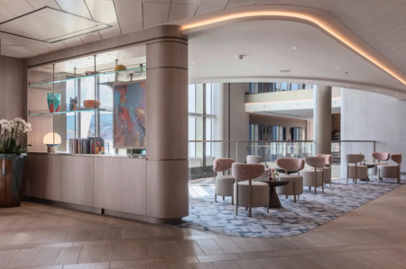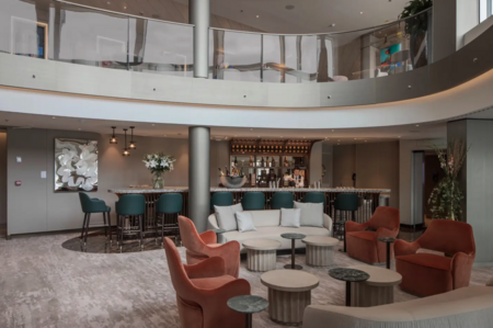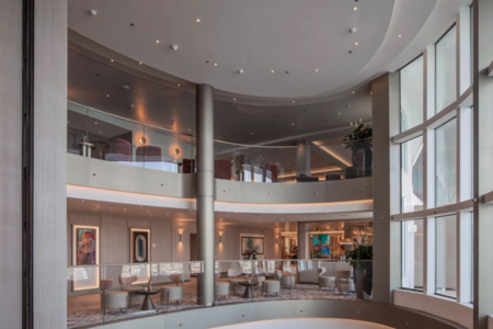 Located on deck 4, the Atrium is the beating heart of Silver Ray. Inspired by Roman architecture, the Atrium’s magnificent windows floods our central meeting areas with abundant natural light. The area is home to both the Arts Café and The Shelter, as well as main service areas such as the Reception, Shore Concierge, and Future Cruise Sales. The Atrium’s enormous glass wall stretches over two decks, guaranteeing a deep connection with your destination whether at sea or docked in port.