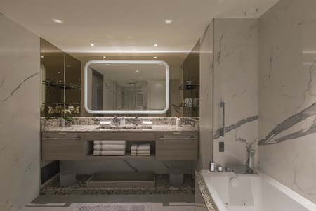 If you have ever wanted to indulge in one of the epitomes of ultra-luxury cruising, then the Grand Suite is perhaps the answer. Situated at the front of the ship, the Grand Suite offers sophistication and style for serious travelers. Thanks to an innovative design, the Grand Suite is one of the most luxurious and spacious suites aboard Silver Ray, offering sweeping sea-to-sky views of your destination from all living areas. A luxurious bathroom with a double vanity, whirlpool bath, and walk-in shower, plus a complete guest restroom.