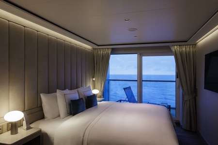 Well situated at the front and back of the ship, the 28-m2 (301-sq-ft) interior of the Veranda Suite is only the beginning. The 5-m2 (54-sq-ft) teak balcony makes each spectacular sunset feel like it is yours alone. From beautiful bed linens to sumptuous furniture, our Superior Veranda Suites are luxurious inside and out! Whether enjoying some down time with the state-of-the-art entertainment system or taking in dinner in-suite, the Superior Veranda is the coziest home away from home on the high seas.