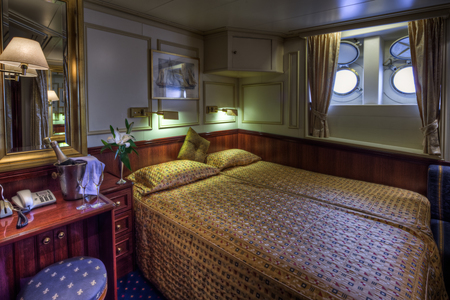 Category 5 staterooms feature ocean views, a double bed, and a marble bathroom with shower. Each stateroom also benefits from air conditioning, hair dryers, private safe, television, DVD player, telephone and other amenities an experienced traveller has come to expect.