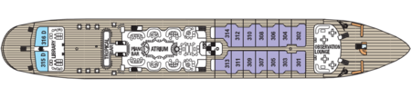 If your time isn't taken up by searching out distant lands from the crow’s nest or enjoying a lovingly prepared meal in the dining room; you can always take a seat in the Observation Lounge, find solitude in the Library, enjoy a drink in the Tropical Bar, or enjoy some live music in the Piano Bar.