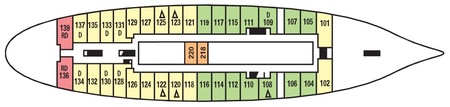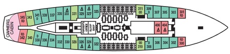 Available in inside or outside, these cabins feature raised twin/double/triple beds, and a marble lined bathroom with shower. Each cabins include air conditioning, hair dryers, private safe, television, DVD player, telephone and other amenities an experienced traveller has come to expect.