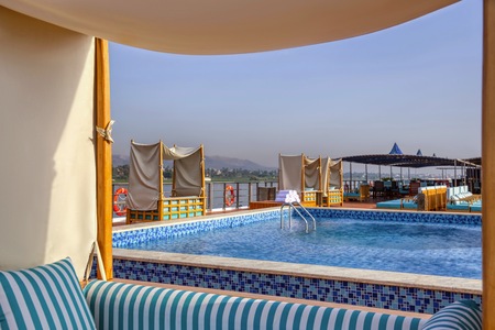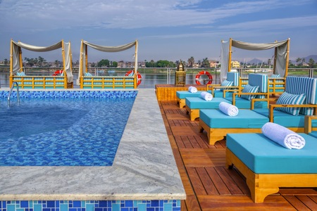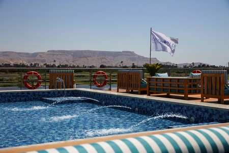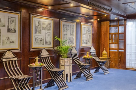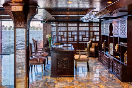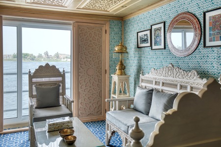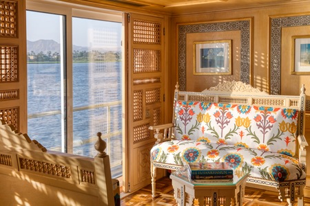 The S.S. Sphinx offers two gourmet dining venues, a swimming pool, massage room, and 42 gorgeously appointed suites. This Super ShipTM vessel offers an authentically immersive onboard experience, with bespoke decor by local artisans and materials sourced regionally—such as fine Egyptian cottons, marble, and hand-carved blonde wood—to highlight Egyptian craftsmanship while minimising our carbon footprint.