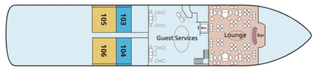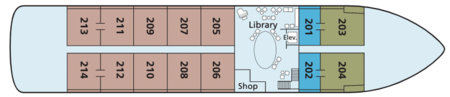 Extensive stateroom choices varying from 290 to 829 sq ft