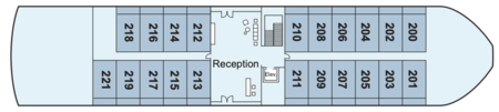 41 comfortable outside staterooms (12 Standard Staterooms, 21 Veranda Staterooms, 6 Veranda Suites, 2 Explorer Suites)