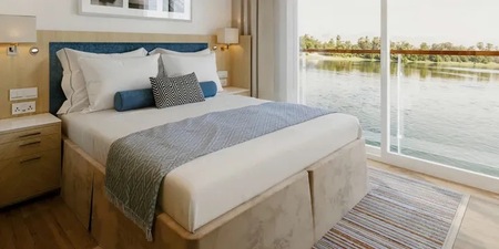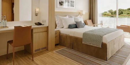 - River-view stateroom with French balcony (floor-to-ceiling sliding glass door) & private veranda