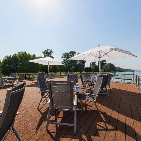 Revolutionary in concept and design, this spacious outdoor seating area at the bow of the ship is perfect for having a casual meal al fresco, meeting friends for drinks or reading a book, all while enjoying breathtaking views and basking in the fresh air.