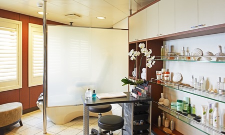 Every inch of your stateroom is designed for comfort. Luxurious Egyptian cotton linens wrap you in pleasant sleepiness as you stretch out in your queen bed (can be separated into twins if you prefer). Your spacious bath features granite counter tops, ample storage, and a roomy shower with massage shower head. L’Occitane® bath products invite you to indulge, while comfy waffle-weave robe and slippers entice you to relax. You’ll find fresh fruit and flowers always waiting for you after a day of sun or sightseeing. And, of course, everything else you need and expect — flat-screen television and DVD, private safe. And always at your fingertips, anything you wish from room service.