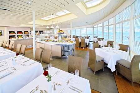Wind Spirit offers two primary dining venues. Amphora restaurant offers gourmet, course-by-course cuisine in the evenings and Veranda restaurant offers casual buffet and full-service dining for breakfast and lunch. All dining is open seating. And, for dining under the stars, make a reservation for Candles which features steaks and skewers.