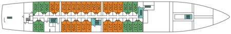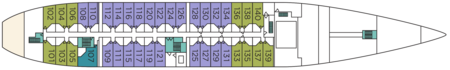 Onboard entertainment facilities include: Sun Deck, Library, Casino, and The Lounge.