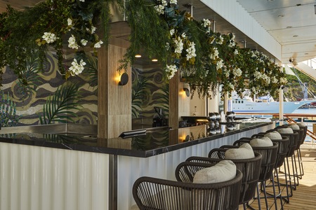 This space will now maximise Wind Surf’s ocean views and create a more convivial vibe for poolside lounging and top-shelf mixology. Tropical scenes and greenery at the bar pull in a natural, outdoor atmosphere. Soothing natural colours convey a beach scene and new arty tiling on the two whirlpools take the form of ocean waves. Look for a variety of new outdoor furniture as well.