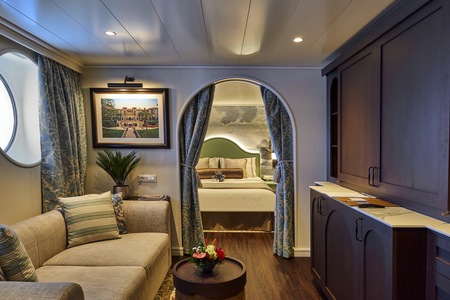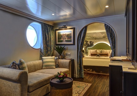One of the best secrets in the cruise industry, this unique suite is located directly behind the Bridge. The Owner’s Suite, previously named the Officer’s Suite, is the only public accommodation near the officers’ quarters. Following the renovation, expect an elevated nautical look for true insider-y yacht life in a tucked away location.