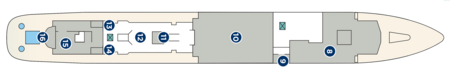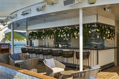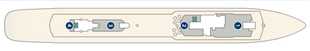 Onboard entertainment facilities include: a casino, a watersports platform, the Compass Rose Cocktail Bar, The Lounge, and The Terrace Bar.