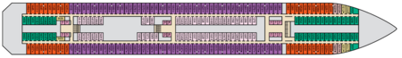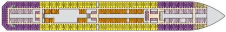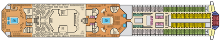 These staterooms are great for a pair of cruisers on a budget, creatively maximizing space with a different layout — featuring one Twin bed, and either an upper Pullman or sofa bed.
