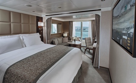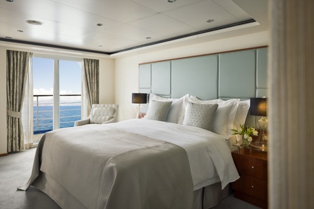 Step out onto your private balcony with a freshly made cup of coffee and take in the grandeur of ocean travel. This suite is packed with stylish comfort, including a king-sized bed, walk-in closet and 24-hour room service.