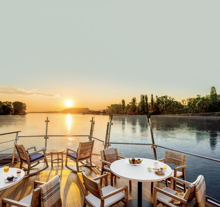 On top of the ship, take in 360-degree views as you relax on the Sun Deck. Exercise en plein air on our walking track. And enjoy the fragrances of our onboard herb garden, harvested daily by the culinary staff and infused in our authentic regional dishes. For safety reasons, guest access to the Sun Deck is restricted during lock transits and when the ship is sailing under low bridges.